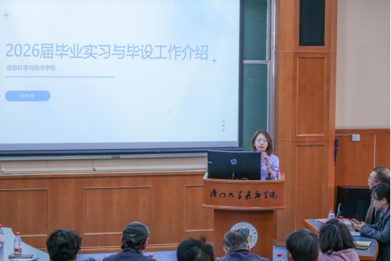 为贯彻落实学校关于毕业生就业工作的部署要求,进一步提升学生就业质量,切实做好信息科学与技术学院(以下简称“信息学院”)毕业生就业指导与服务工作,2025年11月20日中午,信息学院于人文楼B#301 召开2026届毕业生就业工作推进会。厦门大学嘉庚学院实习与就业服务中心副主任李园园老师,学工部王磊老师,信息学院院长夏靖波,信息学院党总支书记刘鹤丹,信息学院副院长刘宝林、郭一晶以及信息学院全体教职工参加会议。本次会议由学院团委副书记杨海洋老师主持。