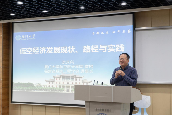 洪文兴教授在讲座中系统介绍了低空经济的发展现状:其核心是构建以无人机等无人系统为主的立体交通体系,关键技术需实现“看得见(数据可视化)、算得清(AI大模型分析)、控得住(无人系统控制)”的闭环;国家监管遵循“先载物后载人、先郊外后城市、先隔离再融合”的原则框架。