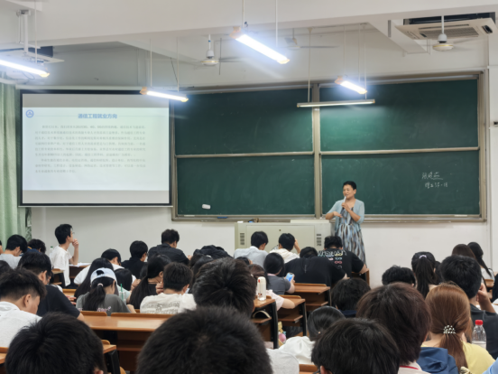 首先张晓燕老师以其深厚的专业知识和丰富的行业经验,不仅向我们解释了通信工程的核心内涵和专业素养而且还系统阐述了通信工程领域的发展历程、现状趋势及未来前景。张晓燕老师通过丰富的实例,展现通信工程专业作为信息技术产业基石的重要地位,并强调了扎实的数理基础与持续创新能力的重要性,同时使我们深刻体会到通信工程的专业人才正是推动社会进步的关键力量。此外,主任还提出作为学生的我们,不仅要掌握扎实的专业知识,更要主动培养系统性的工程思维和跨界融合的创新能力,鼓励同学们积极参与实验实践,通过课程设计等方式提升工程实践能力。